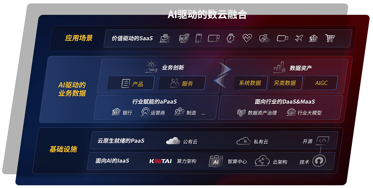 以尊龙鲲泰全国产化计算产品帮助金融行业客户构筑数字底座;以丰富的AI和数云产品及方案,,,保障数据安全,,挖掘数据价值,,,提升服务品质